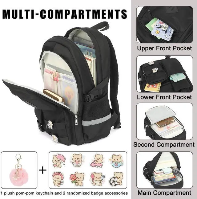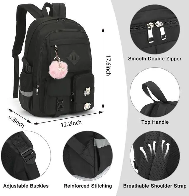 Xunteny College School Backpack for Girls, Women Travel Laptop Backpacks Teens Middle High School Bookbag (Black)