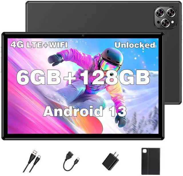 Tablet Android Tablets 10 Inch, Octa-Core Android 13 Unlocked Tablet with SIM Card Slot, 128GB ROM+6GB RAM, 5MP+13MP Camera/5G WIFI GPS/BT/6000mAh/1280*800 IPS Screen/Cellular Tablet with Case (Black)