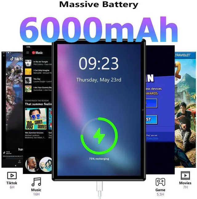 POWERFUL PERFORMANCE: experience the lightning-fast performance of the 2024 newest octa-core android 13 tablet. with its 6GB RAM and octa-core CPU, this android tablet allows you to multitask seamlessly and run apps and games with ease.