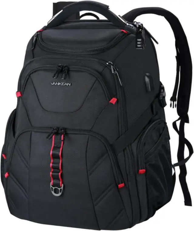 VANKEAN 17.3 '' Travel Laptop Backpack TSA Friendly, Water Resistant Anti Theft Extra Large College Backpacks with RFID Pockets, USB Port for Men Women Business Work Bag, Black