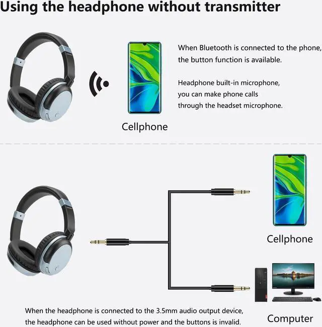 Wireless HeadphoneConnect to mobile phone or Bluetooth audio device via Bluetooth 5.0.It is low latency, enhanced sound quality. headphone is build-in microphone that can make phone call through the headphone.