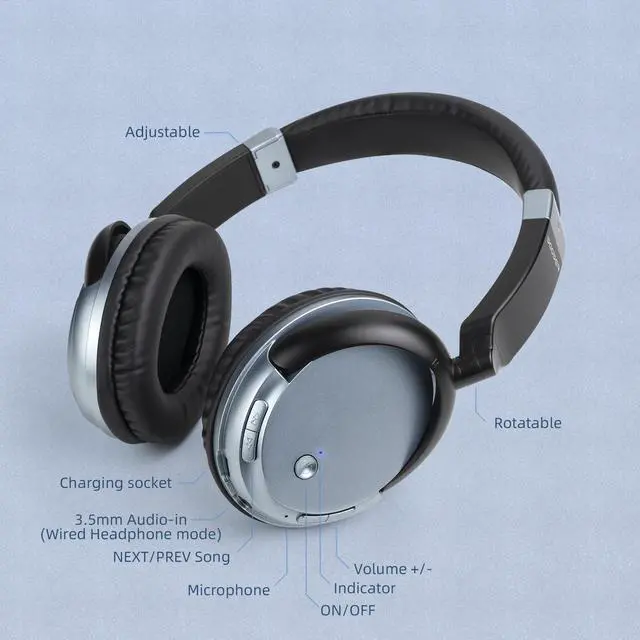 BAOBER Wireless Bluetooth Headphone Over Ear, Bluetooth Transmitter for TV, PC, 3.5 mm Audio Device, Wired and Wireless Headset (Blue)