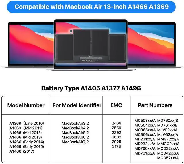 Compatible with MacBook Air 13" Battery Modes: