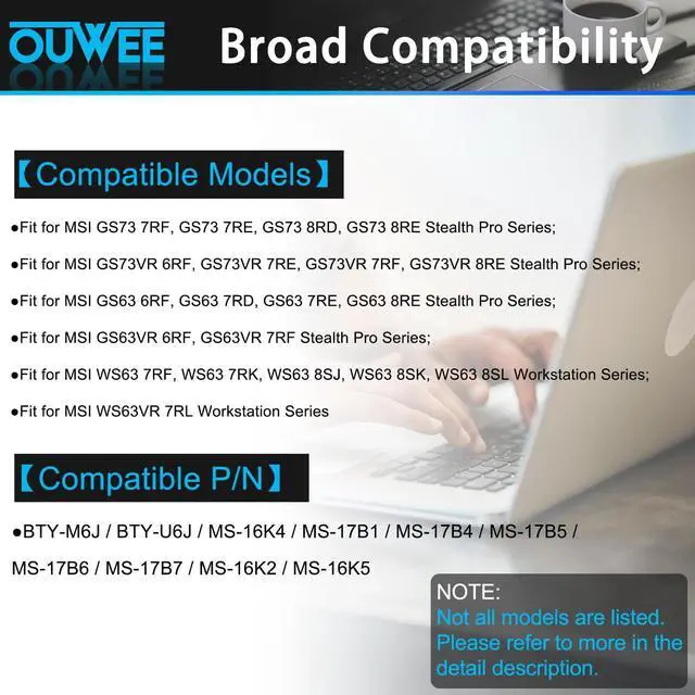 Replacement For LaptopMSI GS63 7RE-009CN 018CN GS63VR 6RF-016CN 095CN 7RF-239CN 258CN GS73 7RE-004CN GS73VR 6RF-013CN 7RF-284CN Series Notebook.