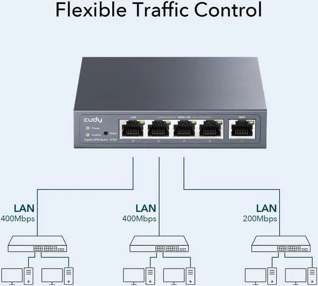 Cudy New Gigabit Multi-WAN VPN Router, Up to 4 Gigabit WAN Ports, SMB Router, Load Balance, Lightning Protection, PPTP L2TP WireGuard OpenVPN IPsec VPN Router