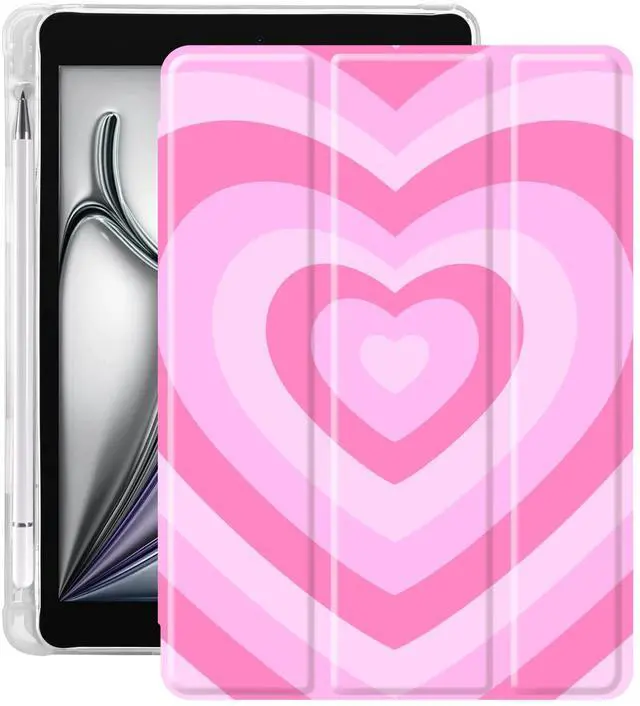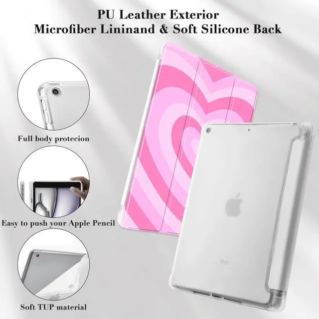 Idocolors Pad Case Pink Love Heart White Cases Cute Art Girly Anti-Scratch Shockproof with Pencil Holder Lightweight Smart Trifold Stand Case for iPad Air(Model Number: A1474/A1475/A1476 ONLY)
