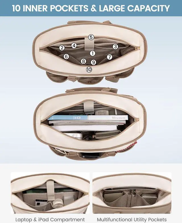Multi-pocket Design for Versatile Use: Our work tote bag for women boasts 10 interior pockets, making it perfect for organizing your work essentials. Whether you're a nurse, teacher, or professional, this tote bag ensures everything has its place.