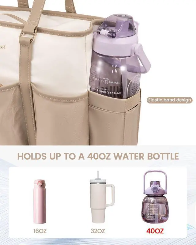 Stylish and Functional: With elastic side pockets that can hold large water bottles, this work tote bags for women combines style and function, ensuring you look good while staying prepared for any situation.