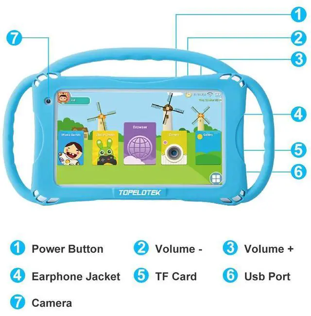 TOPELOTEK Kids Tablet 7inch Tablet for Kids 3-7 with with Case Included, 32GB Storage, Parent Control, Education App, WiFi Camera, Netflix YouTube