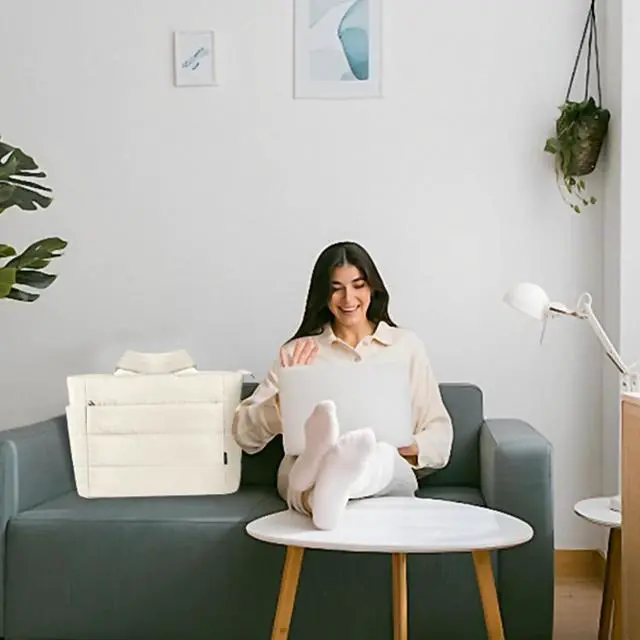 KALIDI Quilted Tote Bag, Carryall Puffer Messenger Laptop Bag Padded Shoulder Large Anti Splash Zipper Casual Work Gym Women, Creamy White