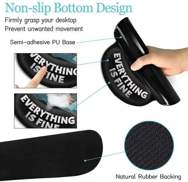 Funny Design: This mouse pad stands out with its fun and unique design. Featuring a black dog sitting on a wooden board in the middle of the sea, surrounded by three sharks, accompanied by a humorous phrase "It's fine Im fine Everything is fine." It adds a touch of humor and personality to your workspace. It's sure to catch the attention of your colleagues or friends