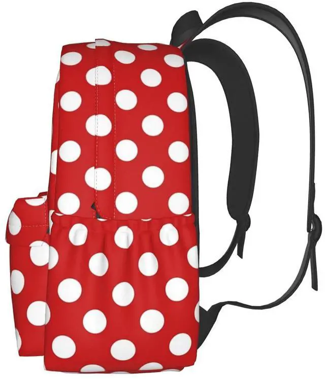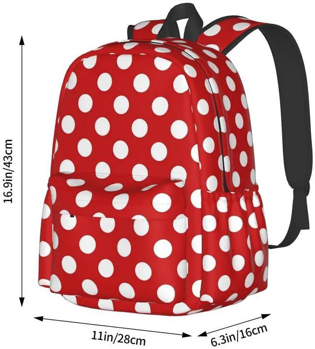 KiuLoam 17 Inch Backpack Red White Polka Dot Laptop Backpack Shoulder Bag School Bookbag Casual Daypack