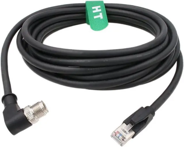 HangTon Right Angled Ethernet M12 8 Pin X-Code RJ45 CAT 6A Network Cable for Cognex in Sight Data Man Keyence IV3 Basler Baumer Sensor Automation PROFINET 15m