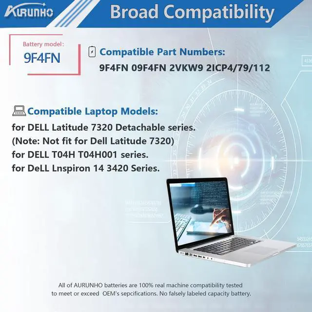 SecurityALl of our 9F4FN for DELL Latitude 7320 Detachable battery are CE,FCC,RoHS Certified .And have passed a series tests of short circuit, overheating, and overload protection before shipments for safety.