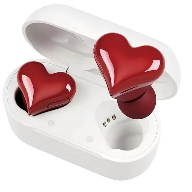 Yoidesu Earbuds Stylish Heart Shaped, Cute Creative Red Heart Bluetooth Earbuds with Charging Case, Noise Cancelling HiFi Stereo BT Earphones, Gifts for Girls Friends