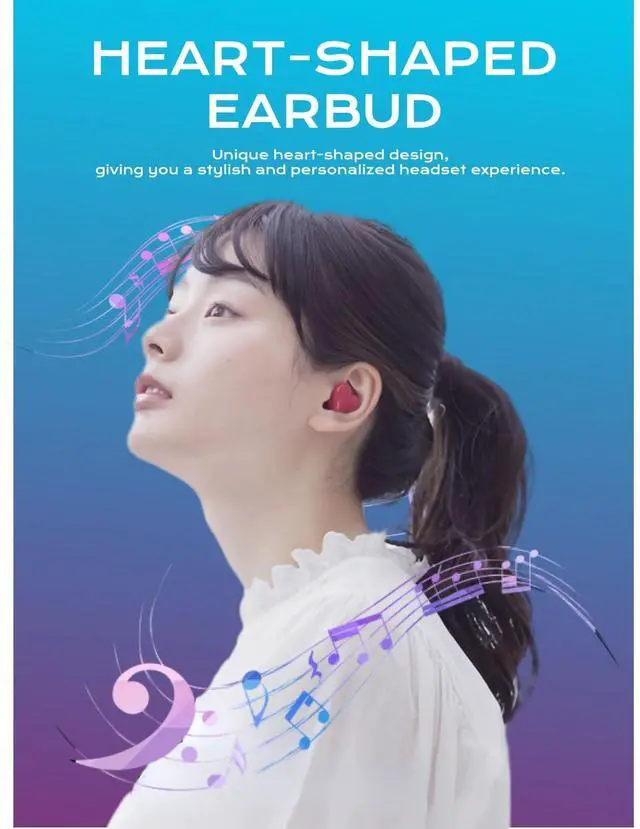 Bluetooth Connection: Heart Shaped Earbuds provide a stable connection via Bluetooth, let you get rid of the cumbersome cable bondage, enjoy music freely.