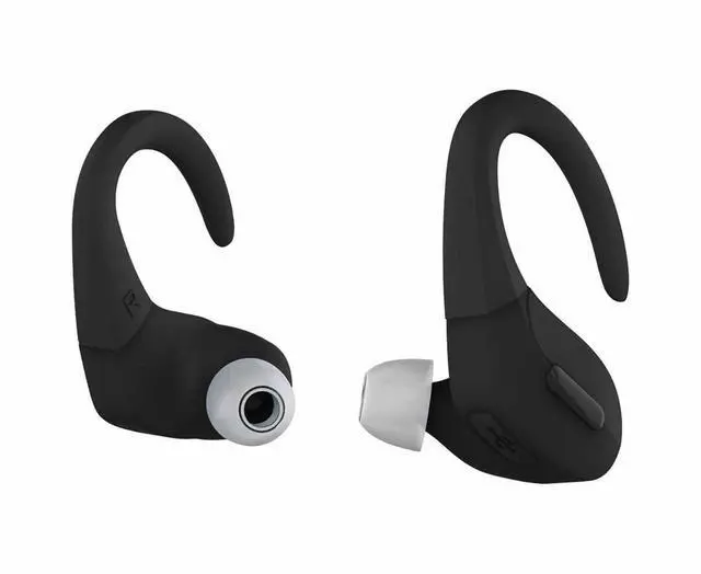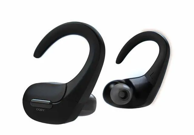 Coby True Wireless Sports Ear Buds with Over Ear Hooks ^^ Wireless Bluetooth Earbuds ^^ Sweatproof and Splash-Resistant ^^ Headphones with Microphone Built-in ^^ for Gym Sports & Running (Black)