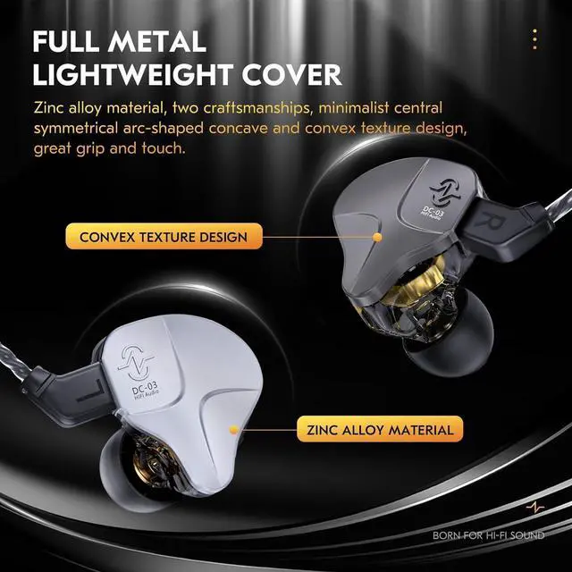 1DD Powerful BASS in Ear MonitorsCCZ DC03 wired earbuds inear earphones adopts 10mm high-performance strong magnet DD and PET polymer diaphragm, bringing a more balanced sound quality. Fully utilizes the potential of the diaphragm, PET composite diaphragm makes the low frequency more elastic, the resolution more accurate and details more rich. The vocal is mellow, moderate low-frequency, clear and full mid-high frequency. Bringing a cinema-level shocking listening experience, highly restore t