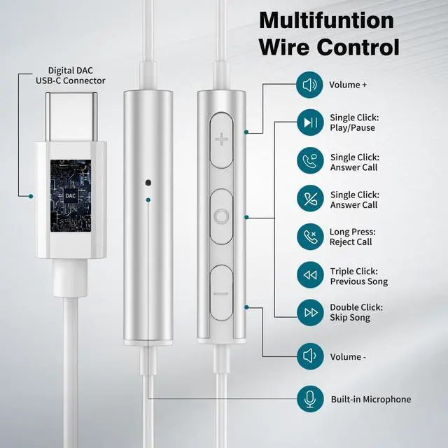 2-Pack USB C Headphones with Microphone Volume Control: If one person like wider sound stage and need to hear some external sound but the other person like noise isolation, then this match will be perfect for your choice.