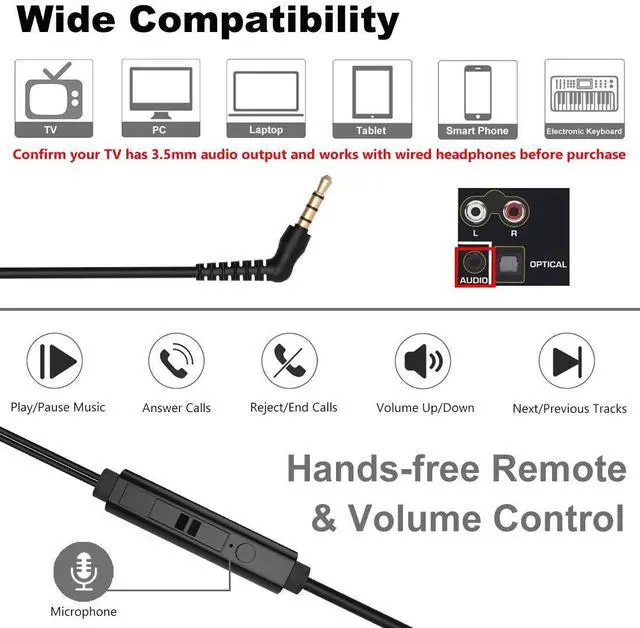 16Ft Extra Long Cord Headphones for TV Computer Use - Built with soft spring coiled cable, these long wired earbuds can easily reach 12ft/3.6m (maximum 16ft/4.8m if fully extended) when connected with the bonus 3.3ft headphone extension cord, with no drawing back and out of battery issue. Perfect for watching TV in the couch, without disturbing others or being bothered by the noise around you. Allows you to stand up or move around in work cubicle, without having to pause your videos, music or online calls.