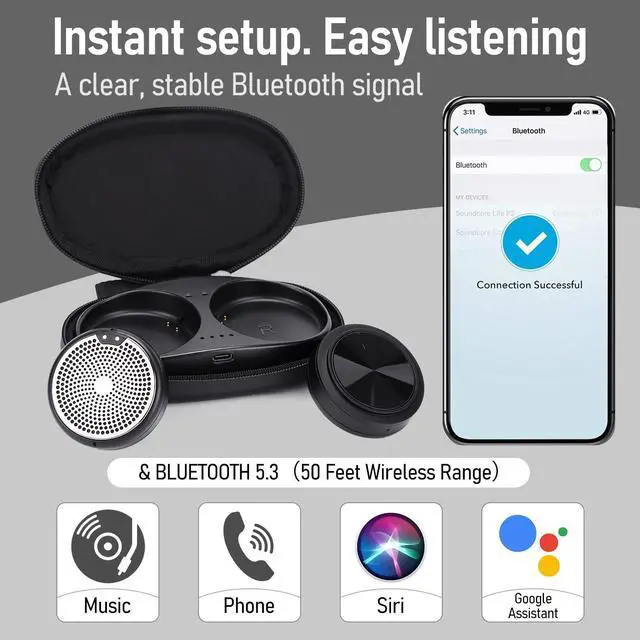 Ski Helmet Speakers, True Wireless Stereo Snowboard Headphones with HDR Audio, Drop-in Headphones Compatible with Any Audio Ready Ski or Snowboard Helmet, Charging Case, Bluetooth 5.3