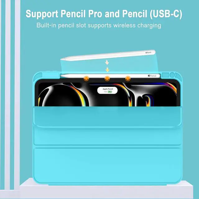 [Supports Pencil Pro and Pencil (USB-C)] This iPad Pro case fully supports Pencil 2 with a recessed side groove for magnetic charging and a magnetic clasp to keep your Pencil secure