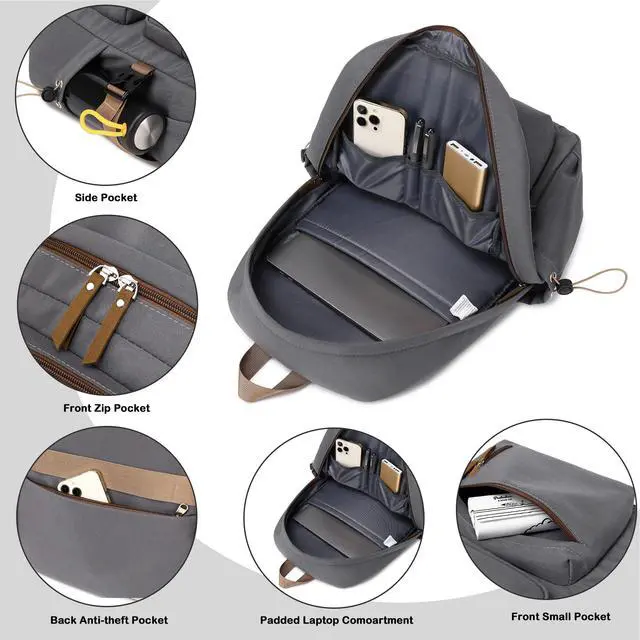 AO ALI VICTORY laptop backpack 15.6 inch anti theft travel backpacks for men and women large college bookbag work business daypack middle high school bag for girls boys teens students grey