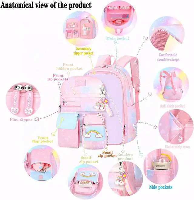 Unique Design: This Girls Backpack Is Designed With Side Opening Pockets That Can Be Opened 180° For Easy Storage And Removal.