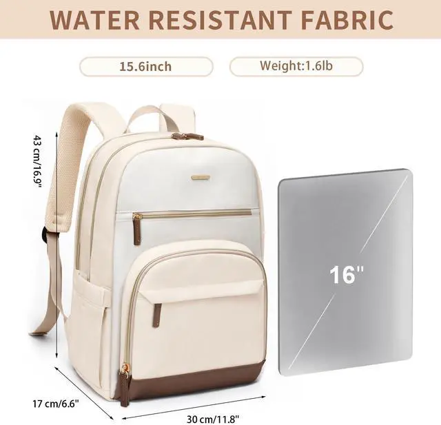 TENSTAR Laptop Backpack for Women, Computer Backpack Fit 16 Inch Notebook, Large Capacity College Backpack Bookbag Casual Daypack for Travel, Apricot