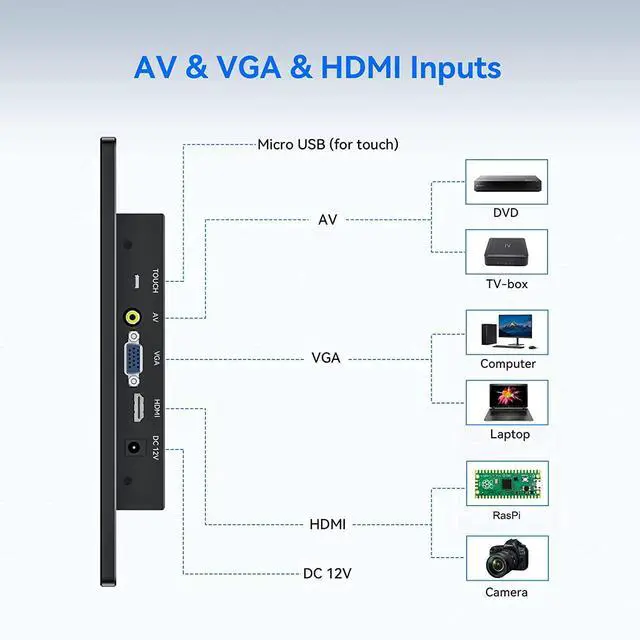 Eyoyo 10 Inch Touchscreen Monitor, Raspi Touch Screen, Small VGA AV HDMI Monitor, Portable IPS Display for CCTV DVD PC Laptop POS Systems with Speakers