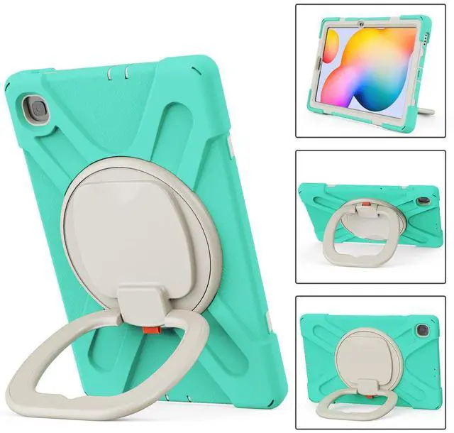 360 Rotation Case for Samsung Galaxy Tab S6 Lite 10.4" Sturdy Cover Rotate Ring Stand Shoulder Carrying Strap Hand Strap Rugged Children Adults Outdoor Case (MintGreen)