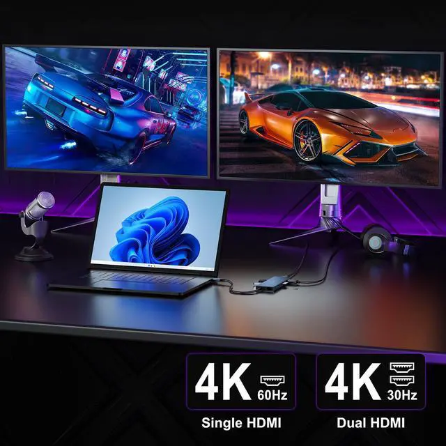 Dual HDMI Docking Station 4K@60HzSingle display: up to 4K@60Hz. In MST mode, dual displays: up to 4K@30Hz. Note: For 4K@30Hz output, ensure output supports 4K and laptop is compatible with DP 1.4 standard or Thunderbolt 3. When Mac laptop used with 4K and low-res displays, adjust res to low-res for