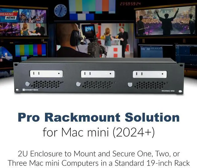 Rackmount Solution for Mac mini: Secures one, two, or three Mac mini 2024+ computers inside a compact and rugged steel 2U enclosure.