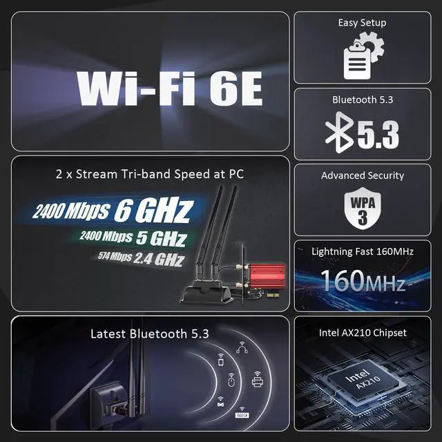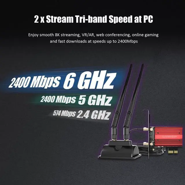 Why Wi-Fi 6E? If your router supports Wi-Fi 6E, this Wi - Fi 6E PCIE card is ideal. Compatible with Windows 11/10 64 - bit and Linux, not for Mac OS/W