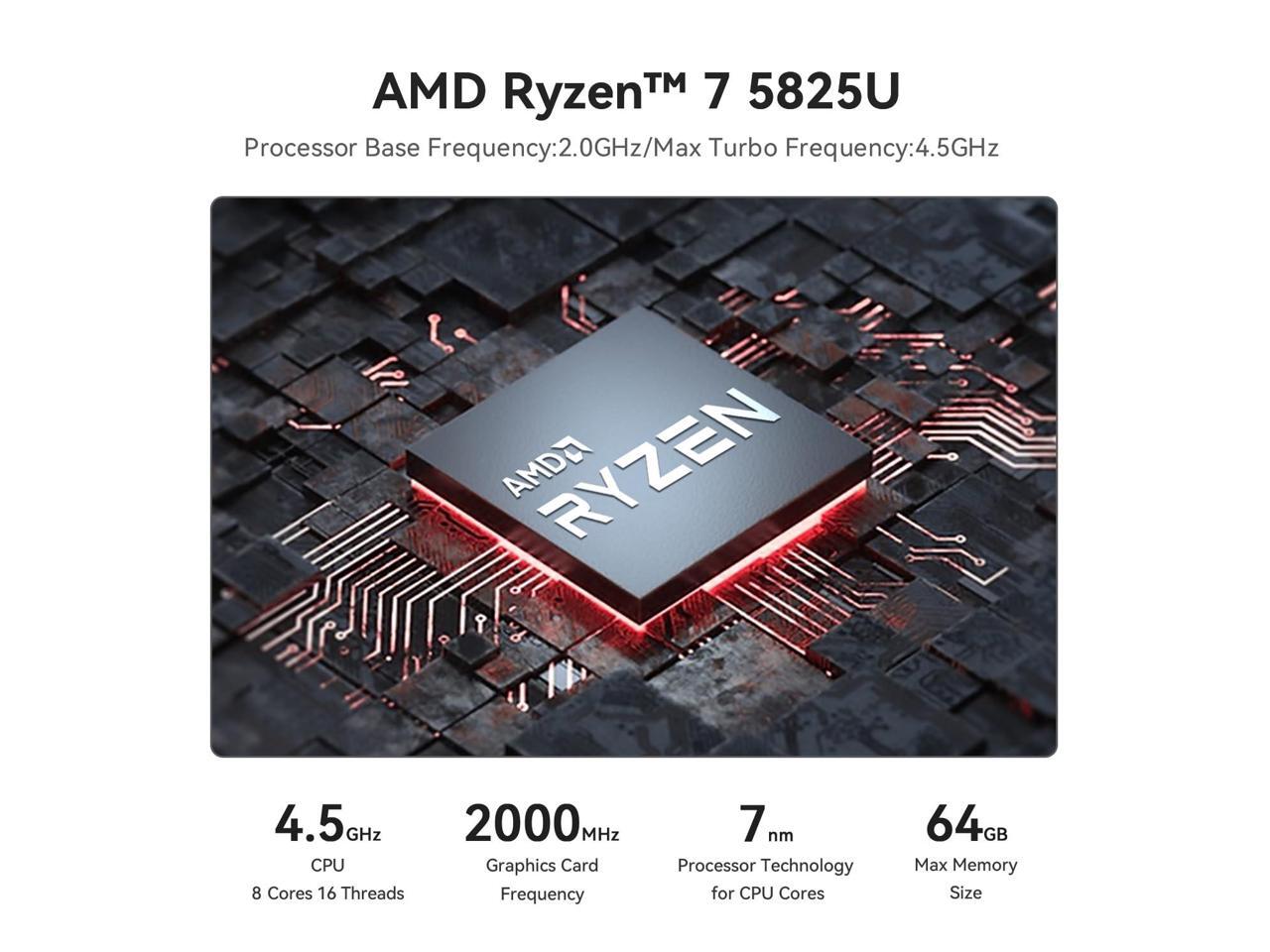 - Excellent Performance Beelink SER5 Pro equipped with AMD Ryzen 7 5825U (up to 4.5GHz), which adopts an 8-core/16-thread. The base frequency is 2.0GHz / Max turbo frequency can reach 4.5GHz. Ensure seamless multitasking and no-delay switching at work, provide the next generation of multitasking experience, and bring processing speed, energy efficiency, productivity, and all-around performance to new heights.