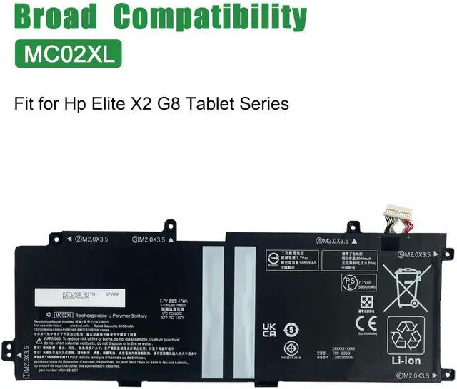 JIAZIJIA MC02XL Laptop Battery Replacement for Hp Elite X2 G8 Tablet Series Notebook M33875-005 M30488-2C1 Black 7.7V 47Wh 5950mAh