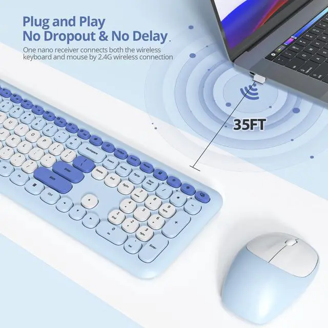 Easy to Use & Plug and Play: This creamy keyboard and mouse wireless operates on a stable 2.4GHz wireless connection with a range of up to 35-foot. The plug-and-play setup ensures seamless connectivity with Windows PCs and laptops
