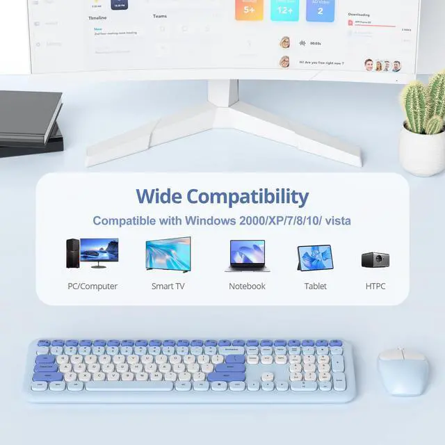Full-Size Ergonomic Layout: Includes a full-size keyboard with numeric pad and cute mouse. Keyboard features a tilt ergonomic angle for comfort, anti-slip pads for stability, and low-profile keys to reduce wrist strain during extended use