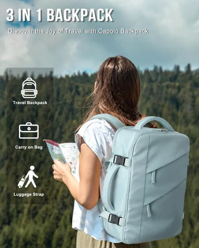 TSA-Friendly Carry-On Backpack:180°opening laptop compartment allows you to lay your laptop flat without removing it, speeding up the airport security.Dimensions 13.5 x 18.5 x 7 inch, it fits most airline regulations for carry-on bags, keeps your essentials close at hand, and saves time by avoiding checked baggage.Compact and lightweight, its easy to carry around and store in overhead compartment or under your seat. Enjoy hassle-free travel with capolo travel backpack today!