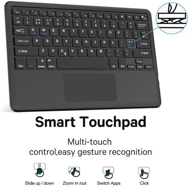 - Bluetooth keyboard is responsive and held into the case by a magnet.