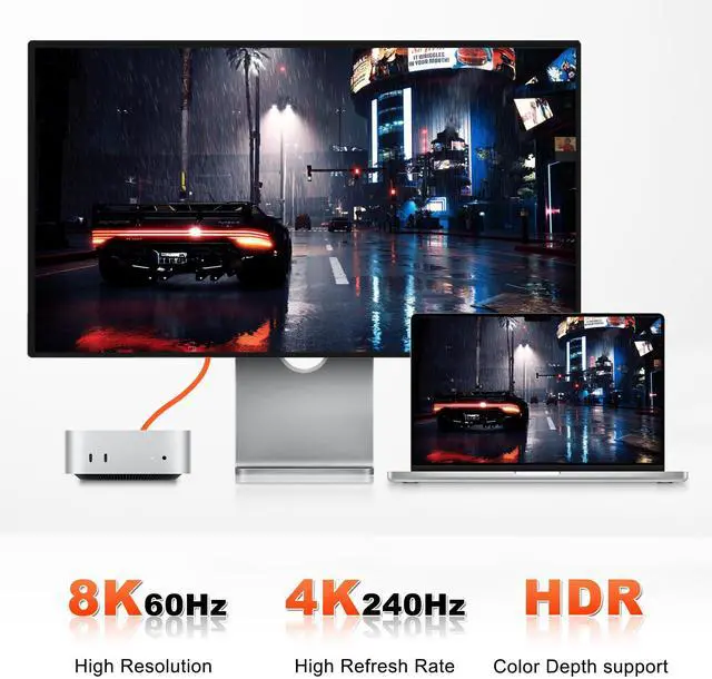 Ultra High Speed Transmission : The HYairspy Thunderbolt 5 data cable is compatible with Thunderbolt 5/4/3, USB4, and USB-C protocols, with a transfer rate of up to 80Gb/s, meeting the requirement of transferring large files in seconds. It also supports high-definition expansion capability, supports 16K/30Hz,8K/120Hz/60Hz,4K/240Hz/120Hz/60Hz resolution video output (device compatibility required), and easily connects to multi screen displays, docking stations, and other peripherals. ^