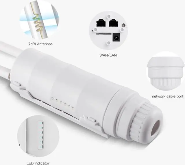 IP65 WiFi Repeater OutdoorOutdoor wifi antenna with built-in 3G/4G modem and SIM card slot. In addition, it is also equipped with a WAN port so that the outdoor wifi repeater will automatically switch to a WAN Ethernet connection once the 3G/4G network loses connection. The Internet access point is designed with IP66 waterproof and dustproof housing, which can withstand various harsh outdoor environments such as high temperature, lightning, heavy snow and heavy rain.