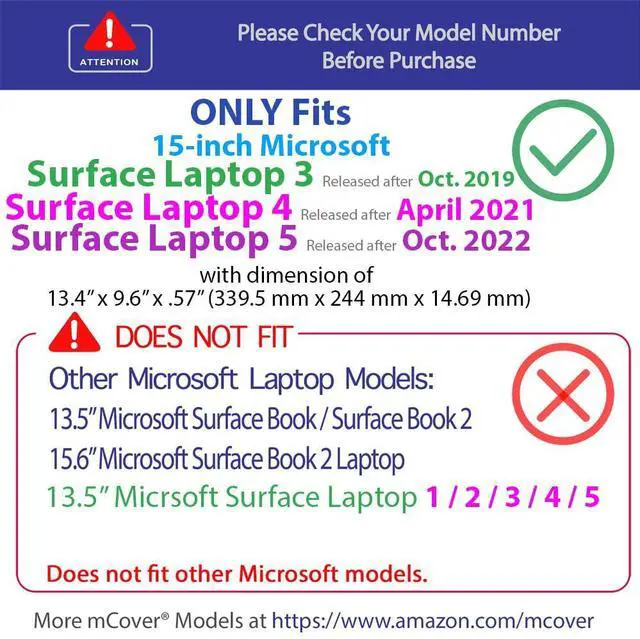 Designed to perfectly fit the 2019 ~ 2023 15-inch Microsoft Surface Laptop ( 5 / 4 / 3 ) Computer and protect ALL corners.