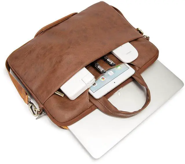 Kinmac Coffee Pu 360° Protective Water-Resistant Canvas Laptop shoulder Messenger Sleeve Briefcase case Bag For MacBook Pro 16 inch,LG Gram 16 inch and 15 inch-15.6 inch Laptop