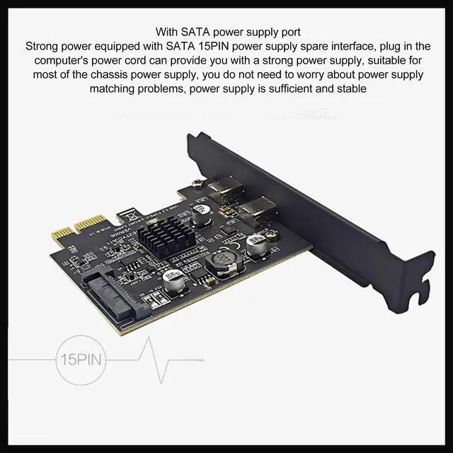 SATA 15PIN POWER SUPPLY INTERFACE: USB 3.2 PCI Express expansion card provides SATA 15PIN power supply spare interface, no need to worry about power matching problem.