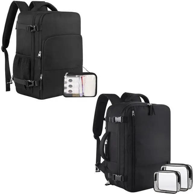 Travel Backpack & Large Travel Backpack (Black & Black), Personal Item Size Airline Approved, Backpack with Multi-Pockets, College Backpack Bag, Waterproof Carry On Backpack, Business Backpack