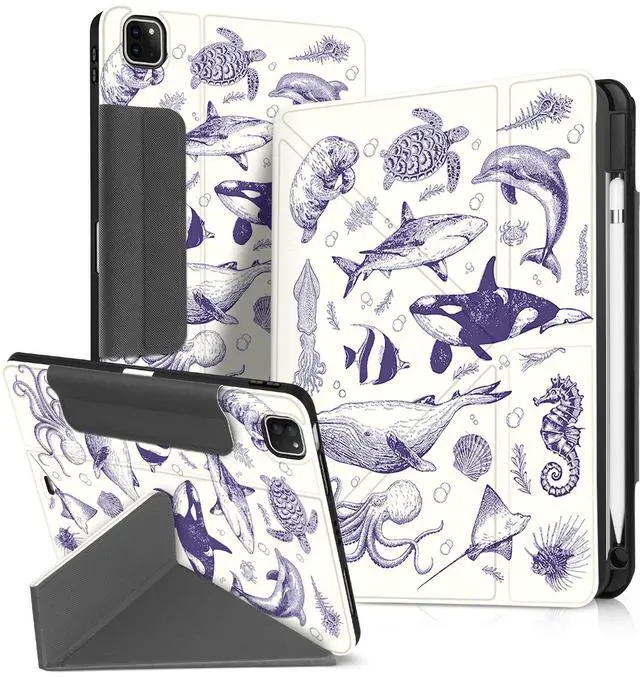 Miss Adola for iPad Air 11 Inch M3 2025 & M2 2024/Air 5th/4th Generation 10.9 Inch/Pro 11 Inch Case - with Pen Holder for Girls Boys Women Men Cute Cartoon Cool Anime Kawaii Fun, Marine Life