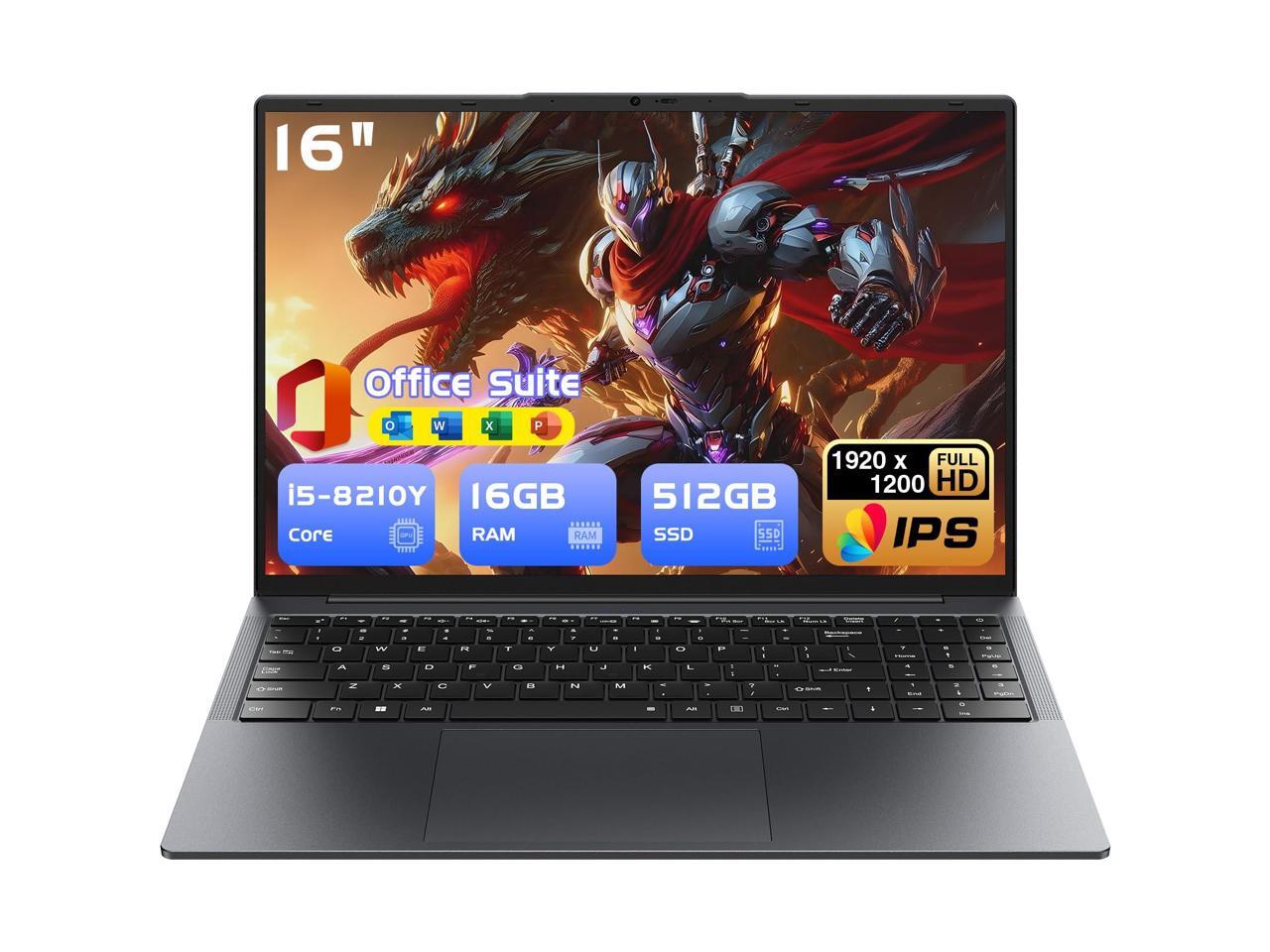HYPERSTRIX 16" Laptop Computer Core i5(up to 3.6GHz) 16GB RAM,512GB SSD,Notebook PC,Office Suite,Gaming Laptop,1920 x 1200 FHD 16:10 Display, with BT5.0 Wi-Fi, USB A, HDMI, RJ45, Backlit Keyboard
