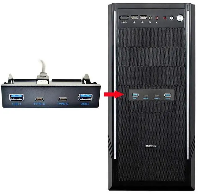 USB-C & USB 3.0 HUB 4 Ports Front Panel to Motherboard 20Pin Connector Cable.