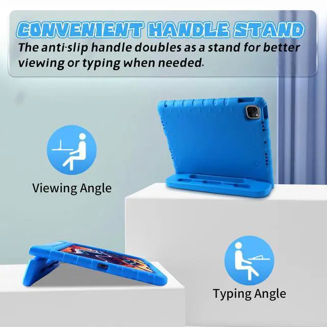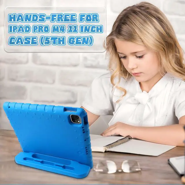 Design for the iPad Pro 11 inch case with pencil holder, it offers a secure grip, making it easier to carry, reducing the risk of drops, and doubles as a sturdy stand for hands-free use, providing peace of mind when kids are handling the tablet.